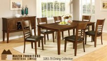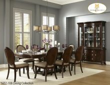 The Delavan Collection. Subtle influence for the design of the Delavan Collection is drawn from the classic look of Art Deco styling. The flared pedestal table base ascends to support the book-matched veneer tabletop. Oval wood-backed chairs feature a complementary radiant veneer pattern and neutral toned padded seats and backs. The rich brown cherry finish serves to highlight the exquisite look of the over all wood veneer. The collection is shown with the china and server of Keegan Collection. The china cabinet, which stands at attention, not only functioning as a storage facility for all of your tabletop finest, but also as the grand centerpiece of this stylish dining offering. For additional storage, or for smaller spaces, the server features wine storage and unique mirror accent that adds a small height to the standard server. Ample storage is feature prominently on both pieces.