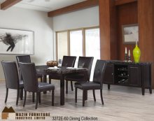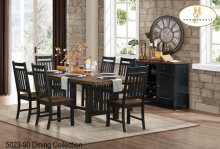 The Three Falls Collection. Two-toned to achieve a dramatic contrast, the black sand through legs blend effortlessly with the dark brown finish of the naturally-hewn solid wood top. The tables include - rectangular, drop leaf round table and counter-height.