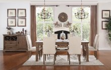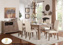 The Mill Valley Collection.With traditional touches that blend elegantly with the casual look of the Mill Valley Collection, your dining room will be a warm and inviting space to share meals with your friends and family. The weathered wash finish of this dining offering has hints of gray and white alluding to a rusticated lifestyle. Neutral tone padded fabric chairs feature nailhead accent and wood leg support. The coordinating server features drawers, door, and wine storage for the ultimate convenience.