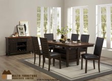 This collection of 3 dining tables and 2 chairs can be mix'n matched together. They all feature a UV (ultra-violet) protective lacquer finish, that has greater scratch and heat resistance than conventional lacquers. The attractive walnut veneer patterned tops are enhanced by dark chocolate finished legs, and complimentary chairs with brown leatherette seats. A self-storage butterfly leaf allows you to expand the table without having to carry it to your dining area or find an out of the way place to keep it when not in use. Simply choose the size and style that suits your particular needs.
