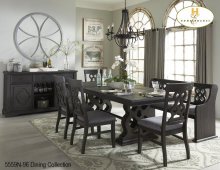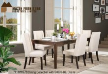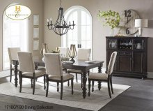 The Hartford Collection. The finish on the Hartford collection in a Walnut finish, reflecting today’s trend in home décor. This contemporary design uses light grey fabric chair seats and a large wood paneled back, completing an overall look that says “now”.