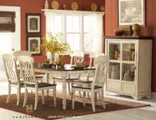 The Ohana Collection. The design of Ohana Collection captures the essence of a casual country home. Its antique white and warm cherry, or antique black and warm cherry finishes give it a striking two-toned appearance. The solid wood table top and unique chair back supported by turned legs complement Ohana Collection with a touch of elegance. This group is further accented by the curio which features two sliding glass doors. It´s a warm look you鈥檒l love having in your home.