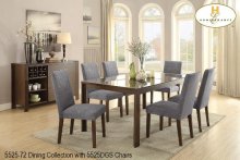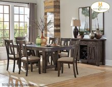 The Mattawa Collection. Metal banded rivet accenting provides visual contrast of the chairs, table and server. The brown finish has hints of grey undertone lending to the rustic look.