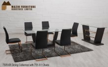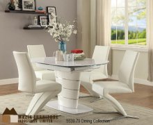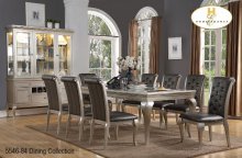 The Crawford Collection. Blending traditional lines with modern glamour is the Crawford Collection. Finished in an eye-catching silver, the collection will be a dramatic addition to your home’s dining room. Cabriole legs lend traditional accent to all pieces in the collection. Unique accenting abounds in this collection, the tabletop features inset opaque glass panels and the chairs are enhanced with crystal button tufting. The china lends visual impact as well as functional display and behind drawer and door storage are perfect for your prized table top accessories.