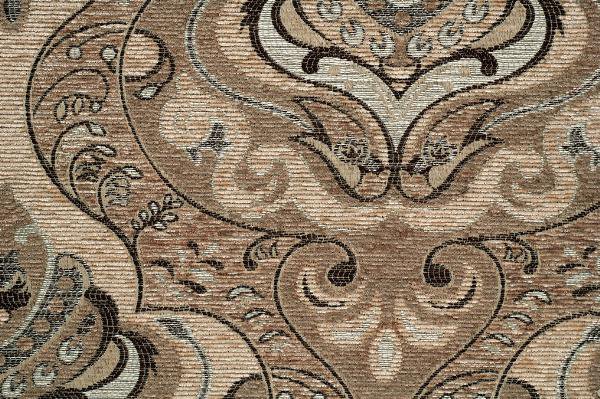 | The Thibodaux Collection. Offered in two coverings - Brown fabric with bi-cast vinyl accent or neutral toned acanthus print fabric - the collection combines these covers with a dramatic show wood frame that features carvings and scrolled arms. Contrast toss pillows complete the look. |