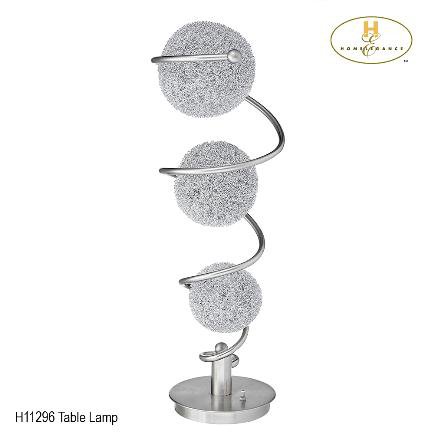 | The Lenci Collections. The metal saturn three orbs accent light gravity defying design features three aluminum warped sparkling orbs suspended mid-air, illuminating warm white light rays. The piece is beautifully crafted using high quality satin nickel finish metal. Remarkable addition piece on your night stand, end table, or sofa table. Great accent lighting table lamp that can enhance the surrounding ambiance, perfect for a night light, or a mood light to brighten up any room. |