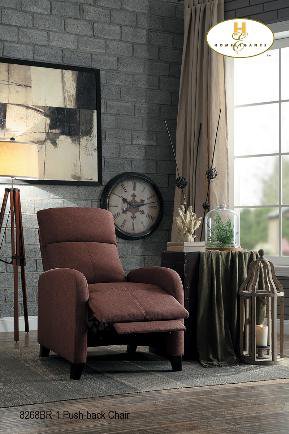 | 8268BR-1 | Push Back Recliner Brown Fabric | 27 x 36 x 43H |