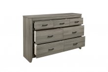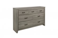 With a transitional look that lends to industrial, rustic and modern styling, the Waldorf Collection is a versatile choice for your bedroom. The printed wood grain of the performance laminate is featured in a gray tone allowing for neutral accent to your stylistic environmental choices. Horizontal accenting on the headboard and footboard creates a dramatic line that carries over to the clean design of the case pieces, each featuring distinct framing and dark, contrasting metal hardware.