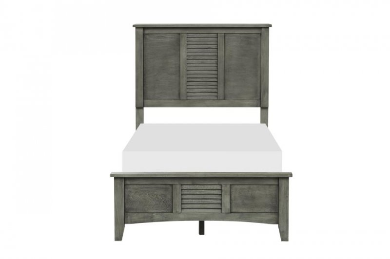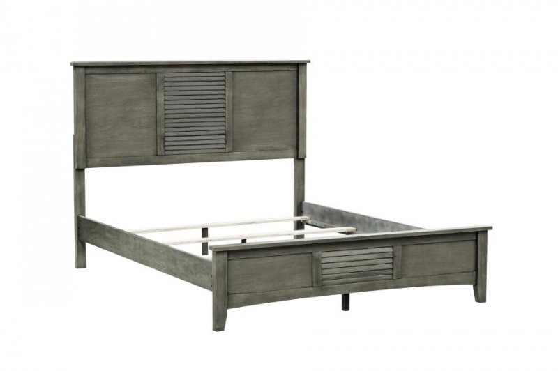 Transitionally styled for your bedroom is the Garcia Collection. Created for versatile placement within a number of environments the louvered panel accents, distinct framing along with a cool gray finish over birch veneer combine to provide a clean palate for your personal decorative style. Nickel knob hardware provides subtle, yet distinct, contrast to the fronts of each case piece. The available desk is a functional addition to the collection with storage. The collection is offered in twin, full, queen, Eastern king and California king for the perfect fit within your bedroom.