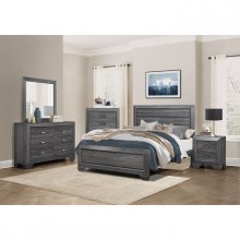 Blending the elements of contemporary design and rustic aesthetic, the Beechnut Collection is a unique addition to your bedroom. Dark under-paneling serves to highlight the gray finish of the embossed faux-wood veneer of the raised panels on the Eastern King bed. Also available in natural finish.