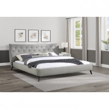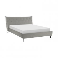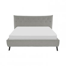 The knife edge profile of the Remy Collection cuts a modern look for your bedroom’s décor. The concave curve of the low-profile Queen platform bed’s headboard is accented with button tufting and a grey fabric cover. Black metal legs provide support to the bed while offering subtle complementing contrast to the overall design of the piece.