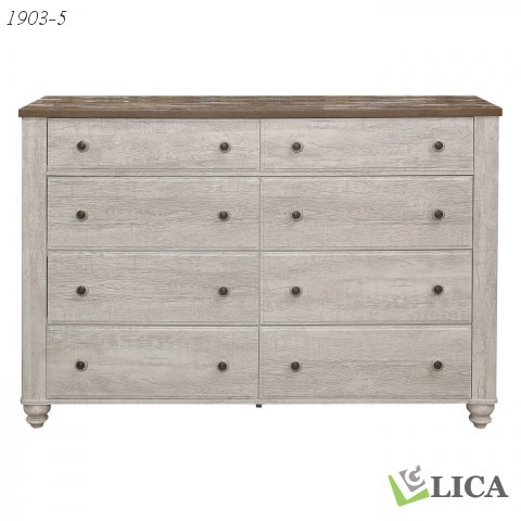 Transitional-rustic styling is expertly achieved in the design of the Nashville Collection. The two-tone faux wood look of melamine provides distinct contrast with antique white and brown lending visual texture to the dresser. The classic framing of the collection is paired with knob hardware that features white wood and black metal, to complete the rustic look.