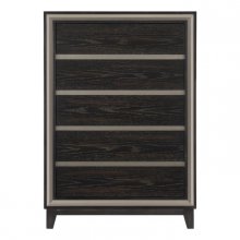 The Grant Collection features a streamlined profile and visual complementing contrast, with the resulting design being a perfect fit for your modern home. An ebony finish is utilized over oak veneer, highlighting the distinct grain, with silver finished banding defining the front of the nightstand. Hidden, under-drawer finger pulls further the minimalistic look of the piece.