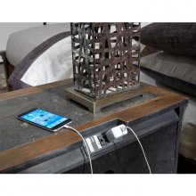 Classic transitional styling takes on a rustic aesthetic in the design of the Narcine Collection. Functional storage space is a concern in any home and with the addition of the Narcine Collection, those worries are a thing of the past. On the nightstand, a mounted power strip with USB ports allows for easy charging of your electronic devices. The bluestone insert that tops the nightstand is perfectly complemented by the weathered gray finish of the oak veneers.