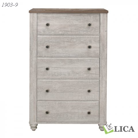 Transitional-rustic styling is expertly achieved in the design of the Nashville Collection. The two-tone faux wood look of melamine provides distinct contrast with antique white and brown lending visual texture to the chest. The classic framing of the collection is paired with knob hardware that features white wood and black metal, to complete the rustic look.