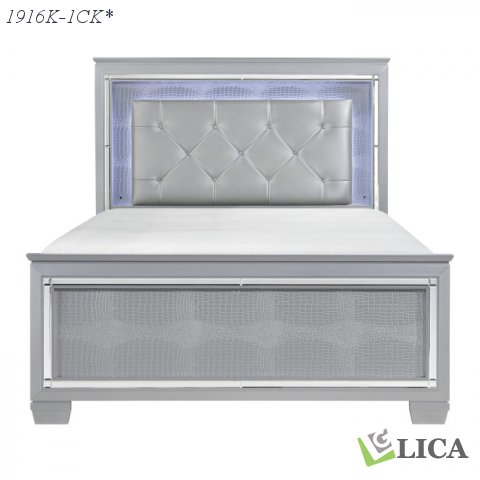 1916K-115 1 California King/Eastern King Headboard, Gray PU & LED & Mirror 8.52 81.2500 67.5000 85.5 x 38.25 x 4.5H 79.5 x 4.25 x 59.5H