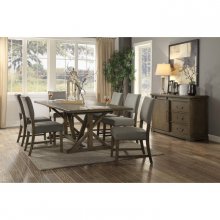 Rustic industrial styling lends accent to the transitional design of the Wheaten Collection. The natural finish of the quarter-cut ash veneer highlights its distinct wood grain. Neutral toned fabric is accented with burnished nailheads for complementing contrast.