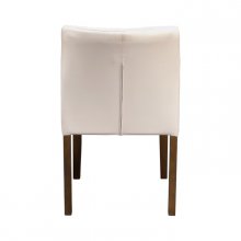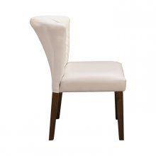 The modern profile of the Nelina Collection pulls design inspiration from mid-century modern styling and updates it with the addition of padded, contoured chairs. The stark white faux leather covered chairs provide distinct contrast to the wood chair legs that feature an espresso finish.
