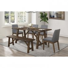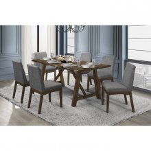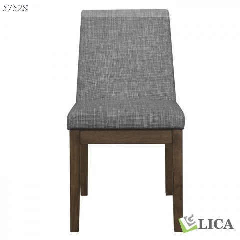 Pairing the natural form of wood with a modern profile creates the look of the Whittaker Collection. The wood frame of the side chair is finished in brown, with light burnishing, perfectly contrasting the padded seat and back of the chair that are covered in gray linen fabric.