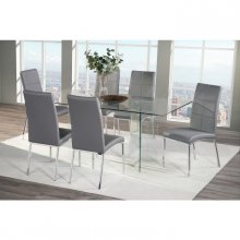 Sleek design and compact sizing gives the Peyton Collection an effortless elegance that allows it to accommodate any modern dining space. The fully padded back and seat cushion is graced with chic faux leather upholstery accented by double stitched biscuit tufting and stands atop polished chrome legs. Perfect for a wide array of modern styles, the Peyton is available in black, white, and grey.