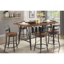 The Selbyville Collection will be a perfect addition to your cozy dining space. The light cherry finish of the poplar veneer is perfectly complemented by the dark metal of the barstool’s framing. The rustic industrial styling makes this smaller scale collection a big addition to your dining area. Coordinating table is also available.