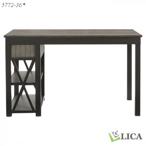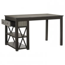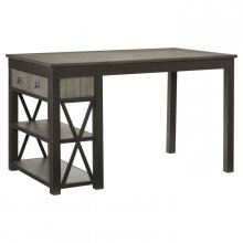 Inspired by industrial environments, the Elias Collection presents a functional modern aesthetic to your casual dining space. Acacia veneer features a gray finish that is perfectly contrasted by the gunmetal gray finished wood framing that provides support. The table features a bookcase side support which features open display as well as drawer storage allowing for easy access to your tabletop items