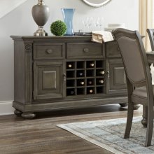 Elegantly designed for your casual traditional dining room is the Summerdale Collection. Birch veneer is highlighted by the gray finish. The server provides ample storage space in the form of drawer, door and wine bottle rack.