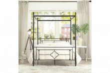 Inspired by vintage design, ball finials top the canopy frame while prominent decorative jointing and classic quatrefoil pattern lend to the modern traditional look of the Hosta Collection. The built-in platform support allows for the use of a mattress without a box spring. The Hosta collection is offered in twin and queen size bed options for versatile placement within your home.