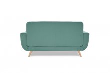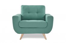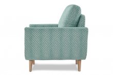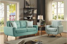Mid-Century modern design is the inspiration for the Deryn Collection. Wide, dramatically curved arms rise to the straight back that is synonymous with this classic style. Contrast toss pillows and an additional chair option are featured in a modern teal herringbone pattern to complement the teal fabric seating body covers. Tailored stitch tufting lends further accent to this thoroughly modern collection.