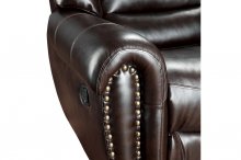 With plush seating that is uncommon in most traditional looks, the design of Center Hill Collection will be a welcome addition to your living room. The traditional nail head accent lends an elegant statement to each piece and the easy recline mechanisms adds to the comfort. This lovely seating offering will provide your friends and family a warm environment to spend their quality moment. The collection offered in dark brown faux leather with manual or power reclining mechanism.