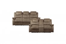 Styled for the transitional home, the Shola Collection is a comfortable and functional addition to your living room. Brown polished microfiber with contrast stitching, making it a neutral decorative choice for a number of home environments. The power motion reclining and headrest mechanism, once engaged, operates to take you from seated to reclined in an easy motion with personalized head support. The sofa features dual reclining ends, as does the love seat. The sofa has a drop-down center back that reveals cupholders, flat surface, USB port and power supply. The love seat features a center console with cupholders and lift-top storage. The collection is also available in manual pull version.