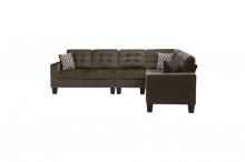 Subtle traditional styling provides a clean and classic look for your home in the Lantana Collection. The sectional allows for the perfect placement within your living room. Chocolate fabric with contrast pillows that furthers the look and versatility for placement within a number of home decors. Also available in gray.