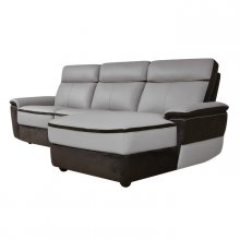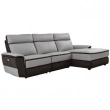 Providing ample seating for your friends and family is the Laertes Collection. The classic sectional shape is book-ended by stationary chaise options or USB port enhanced end power recliners. Taupe gray top grain leather provides a gentle touch while darker tone fabric lends stark contrast. The power reclining mechanism bring you to your desired position with a touch of the button.