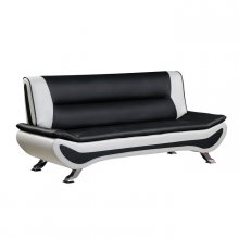 Bringing to mind the sleek styling of an Italian race car, bold contemporary styling sofa creates eye-catching drama for your living room with the Veloce Collection. Color blocked black and white faux leather covers the ultra-low profile seating, while chrome legs provide support.