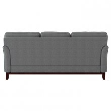 Inspired by classic frames of the past, the Blue Lake Collection is a study in casual sophistication. The sofa is covered in gray fabric that is enhanced by the modern geometric cresent pattern of the toss pillows. An exposed wood base rail, welting and flared arm lend considerable style to the tailored profile of this classic collection. Reversible seat and back cushions further enhance the functionality.