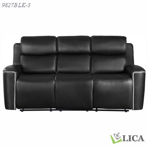 Utilizing modern lines with traditional accenting, the Altair Collection will be a unique addition to your modern home. Black textured faxu leather with decorative high-polish nailhead accent, for ultimate decorative versatility in placement within your space. Manual reclining mechanisms engage with the pull of the side-mounted tab, taking you from seated to prone in an easy movement.