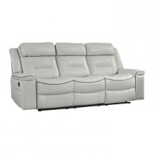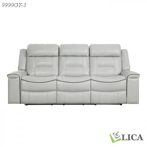 Soft contemporary styling makes the Darwan Collection a comfortable and functional addition to your living room. Light gray, with dark gray contrast premium faux leather making the sofa a bold decorative choice for your modern home. Manual motion mechanisms operate with the pull of a side-mounted tab, that once engaged, take you from seated to reclined in an easy motion. The sofa features dual reclining ends. Providing additional function is the extended reclining mechanism that allows for further extension than the average recliner.