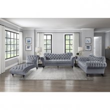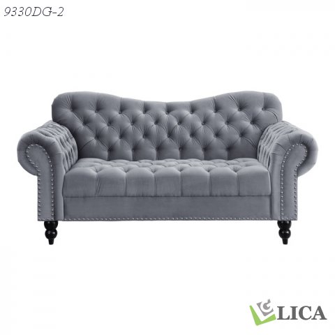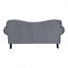 The exquisite glamour that accents your home will pair perfectly with the Rosalie Collection. The dramatic curves of the love seat give way to traditional accent in the form of rolled arms, button-tufting, turned legs -with black finish- and nailhead trim. The velvet covering of the collection is offered in dark gray to perfectly complement your living space.