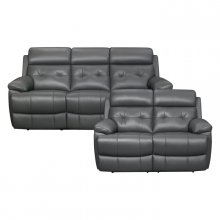 With a hint of glam the Lambent Collection was designed for placement in your modern living room. Dark gray top-grain leather-match coverings - lend elegant accent to the decorative preferences that fill your space. Manually engaged motion mechanisms allow for quick transition from seated to prone with the quick pull of a tab.