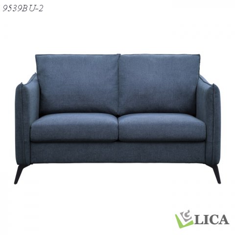 The thoroughly modern design of the Bianca Collection creates a visually stunning platform for your living room’s décor. Flared, knife-edge styling is utilized for the clean lines that define the profile of the love seat. Black finished metal legs provide support and subtle contrast to blue fabric covering.