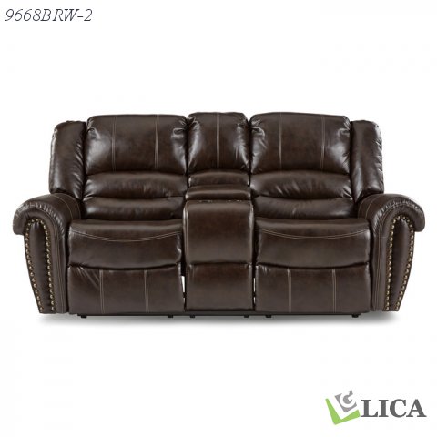 With plush seating that is uncommon in most traditional looks, the design of Center Hill Collection will be a welcome addition to your living room. The traditional nail head accent lends an elegant statement to the love seat and the easy recline mechanisms adds to the comfort. This lovely seating offering will provide your friends and family a warm environment to spend their quality moment. The love seat is offered in dark brown faux leather with manual reclining mechanism.