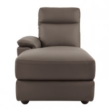 There is no mistaking the Olympia Collection for anything but a bold study on contemporary design. Sleek lines extend with the push of a button on taking you from a seated to prone position with amazing ease, whether you are on the dual reclining sofa, dual reclining love seat, or reclining chair. The raisin tone top grain leather covers the seats, top part of the arms and front part of the backs, while leather match covers those areas beyond your initial reach. White contrast stitching further accents the design.