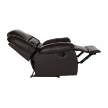 The classic transitional styling of the Jarita Collection creates a look that is perfect for your casual living space. Offered in brown faux leather, the reclining chair in the collection offers plush seats, backs and arms. With the pull of the manual reclining mechanism, you are taken from a seated to prone position in an easy motion.