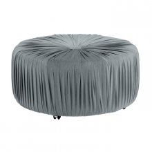 Luxurious, decadent, glamorous – a lifestyle of decorative extravagance is within reach with the Jaunt Collection. Blue velvet fabric is tufted with dramatic flair at the center of the round ottoman, punctuated with an eye-catching over-sized button. Casters allow for quick and easy movement around your space. Also offered in navy and grey for perfect placement within your personal decorative scheme.