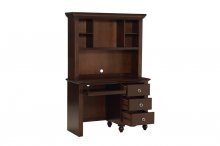 Your child’s bedroom is their space to grow, learn and play. The elegant, yet whimsical, styling of the Meghan Collection will provide the platform from which they will enjoy those experiences for years to come. Design elements of the hutch that lend to a traditional look include, espresso finish, clipped corners, routed pilasters curved top profile. The open display bookcase shelf allows for convenient storage of books and decorative items. Design elements of the desk that lend to a traditional look include, cherry finish, clipped corner top, routed pilasters, high polish round pull hardware, turned feet and curved base rails. Homework time will is a breeze with the addition of the writing desk.