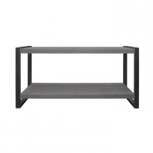 Gunmetal finish provides distinct contrast to printed brown wood grain melamine veneer in the Dogue collection. The 4-shelf bookcase features open display shelving.