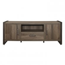 The gunmetal finish of the metal frame provides distinct contrast to printed gray wood grain melamine veneer of the modern styling of the Douge Collection’s cocktail table. Coordinating end table, desk and home entertainment unit are also available.