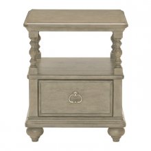 The graceful lines of the Grayling Downs Collection are a welcoming addition to your living room. Styled in the modern-traditional aesthetic, subtle accenting lends elegant touch to the design of the cocktail table. A driftwood gray finish enhances the acacia solids and ash veneer, providing a neutral platform for your decorative preferences. Traditional design elements include – open display shelving, brushed nickel knob hardware, turned feet and decorative pilasters.
