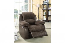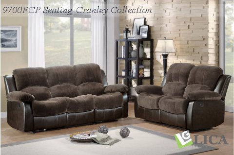 The reclining Cranley Collection utilizes a release mechanism that with a gentle pull sends you straight into your ultimate comfort zone. This collection is offered in chocolate textured plush microfiber with faux leather.