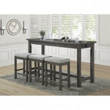 The elevated dining experience that the Connected Collection provides will fuel your device’s battery life while you fuel yourself. The convenience of built-in USB ports and A/C power turns your casual dining area into an efficient recharging station. The four-piece pack of the Connected Collection includes a counter height table and three barstools. A single drawer allows for discrete storage on the table’s side apron. As a neutral pallet for your decorative preference, the collection features a gray finish over ash veneer, with the neutral gray tone of the barstool’s seats providing subtle accent.